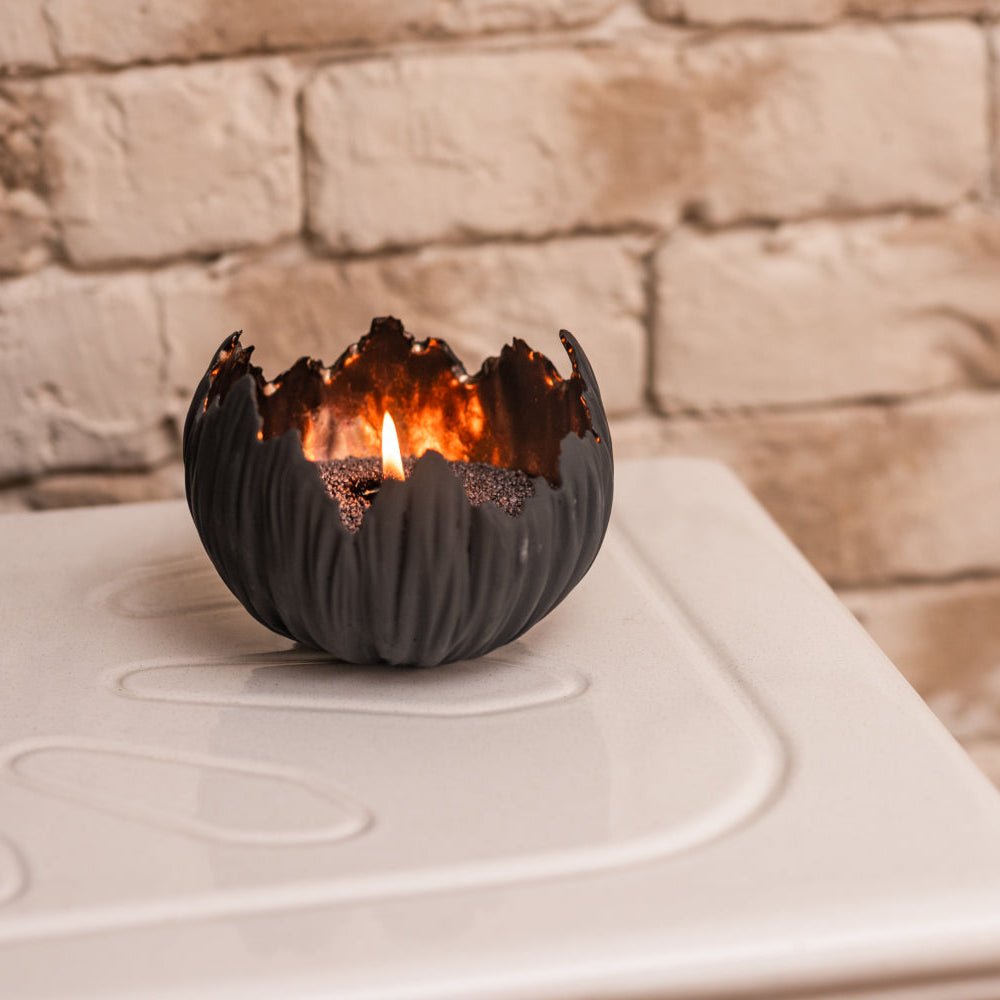 Roku darbs - keramikas trauks ar raupju, teksturētu ārpusi un zeltainu bronzas spīdumu iekšpusē. Kalpo kā elegants svečturis un dekoratīvs elements uzglabāšanai (piemēram, augļu).
